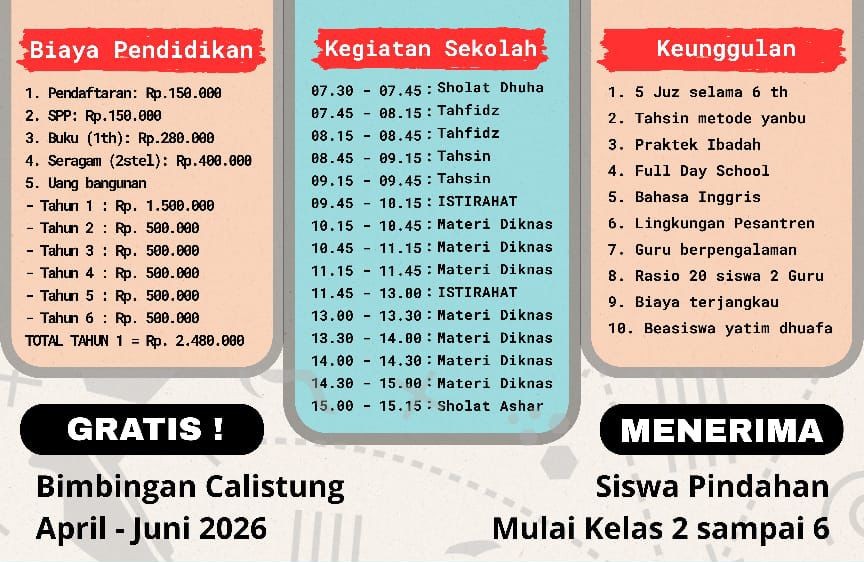 BONUS KHUSUS: Gratis Bimbingan Calistung (Baca, Tulis, Hitung) untuk periode April – Juni 2026!